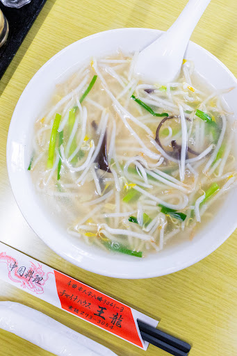 Read more場所は、由緒ある武水別神社のすぐ近く。昔から地元の人々に愛されてきたであろう、なんとも味のある佇まいです。こういう雰囲気、大好きなんですよね。期待に胸を膨らませて、早速お店の中へ! 店内は、カウンター席のほかにテーブル席、そして畳の小上がり席もあって、思った以上に広々としています。 新聞や週刊誌がさりげなく置いてあったりして、まるで昭和にタイムスリップしたかのよう。気取らない、この「いつもの場所」感がたまりません。お昼時を少し過ぎていましたが、地元のお客さんらしき方々がくつろいでいました。 席につき、メニューを開いてびっくり! ラーメンやチャーハン、一品料理など、町中華の王道メニューがずらりと並びます。どれもリーズナブルで美味しそう…と眺めていると、とんでもないメニューを発見してしまいました。 「もやしとろみそば 350円」 …え?さんびゃくごじゅうえん!? 思わず二度見、いや三度見してしまいました。通常のラーメン(650円)よりも断然安いって、一体どういうことなのでしょうか!?隣の「もやしあんかけ焼きそば」も450円と、こちらも破格の値段設定。 後で少し調べてみたところ、これでも少し値上げされた後の価格なのだとか。以前は一体いくらだったのか…恐るべし「王龍」さん。 これはもう、頼むしかありません!今回は「もやしとろみそば(塩)」を注文。あまりの安さに申し訳なくなってしまい、サイドメニューで「餃子(420円)」も追加しました。 しばらくして、注文の品が運ばれてきました。 正直、「値段が値段だから、量は少なめなのかな…」なんて少し不安に思っていたのですが、とんでもない!ちゃんとした丼になみなみと注がれ、むしろ普通のお店より麺の量は多いくらいのボリュームです。 早速スープを一口。あんかけなので、とろみが強く、めちゃくちゃ熱い!でも、これが最高に美味しいんです! 優しい塩味のスープに、刻みショウガの風味がアクセントになっています。具材はもやし、ニラ、キクラゲとシンプルながら、シャキシャキとしたもやしの食感がたまりません。 とろみのついた熱々のスープが、少し縮れた黄色い中華麺にしっかりと絡みつき、持ち上げるたびに湯気が立ち上ります。ズルズルっとすすると、口の中が幸せでいっぱいに。 夢中で食べ進め、あっという間に完食。真夏に食べたので汗だくになりましたが、体の芯から温まるこの一杯は、寒い冬に食べたら間違いなく至福だろうなと感じました。 そして、一緒に頼んだ餃子がこちら。 綺麗な焼き目のついた餃子は、期待を裏切らない安定の美味しさ。野菜の甘みと肉の旨みが感じられる餡がぎっしり詰まっていて、「もやしとろみそば」との相性も抜群でした。この餃子の味からして、きっと他のどの料理を頼んでも間違いないだろうなと確信できます。 今回訪れた「チャイナハウス...