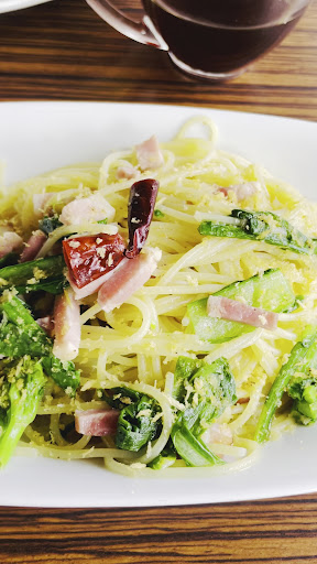 メニュー表を見るより、当日の黒板メニューがよりお得‼︎ ★気まぐれパスタランチ¥1,200(黒板メニュー) ★グーギーズロコモコ(1番人気) ★マルゲリータ(追加の定番ピザ)を注文。 気まぐれパスタは、菜の花とベーコンのペペロンチーノでした。菜の花の苦味とベーコンの甘味が感じられ、とても美味しかった♡ 連れのロコモコのハンバーグも、牛肉の肉肉しさと旨みが最高!人気No.1なのがわかります👌 マルゲリータも本格的な味わいで、あっという間にぺろりと完食‼︎ 大満足なランチタイムでした♪