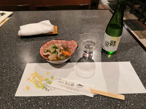 2024/4/6(土)、母との夕食のあとは小中学校の同級生のお店は茨城県筑西市にある『居酒屋割烹 さん酔』さんです。 満席でしたがなんとか入れカウンター席に座ることができました。