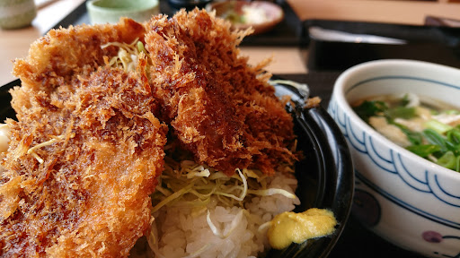 さくさくのヒレカツ、甘めのソースがかけられて、カツの下にはキャベツが山盛り、丼にはマヨネーズとカラシが添えられてました。ソースの別添えもあり、少し足りないときは更につけることも出来ます。細やかな配慮がされています。ヒレカツは柔らかく、もちもちした食感。とても美味しかったです。 青ネギうどんは、筑西地区の青ネギをふんだんに使用されていて、濃い目のお出汁ともちっとしたうどんにとてもマッチします。