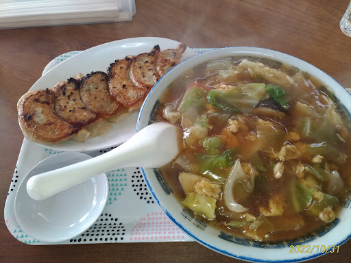 Read more最近、よく食べに来てます🍳 今日も昼過ぎに何気なく寄り絶品の餃子ライスをオーダーしたら、何やら見かけない客が来はじめ、☎️が鳴り響き出しました‼️ 電話が終るとまた呼び出し音が鳴り響き、料理も手付かずで、ママさんが来店客と電話対応で途方に暮れてしまっていた😭 聞くと、2週間前に訪問・撮影されていて、今日の昼飯旅という番組でテレビ放映されたばかりとのこと。 テレビを見たお客様が後をたたず、入って来て嬉しい悲鳴を上げていた😭 一目散で自転車をフルスピードで走らせ帰宅するや否や、車を運転し新華さんから雀荘まで走らせ、届けました。 雀荘さんでは「ご苦労様」と声を掛けられ、「テレビみてたよ」と言われ、帰り際飴玉を駄賃に戴きました😂 私は生まれて初めて出前体験をしましたが、とても清々しい気持ちでした☀️😂 店に戻ると、テレビを見て来店された美女3人家族に笑って「ご苦労でした」に言われ上機嫌でした✨ テレビ放映なくても、何でも美味しいですよ‼️...