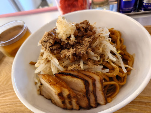 特に汁なしは、啜り辛い麺類で箸で口に運ぶ回数が多くて間抜け顔に成り易い。 丁度角に座り、右手に女性が汁なしを食べてる顔を見て申し訳ない気持ちに成りました。