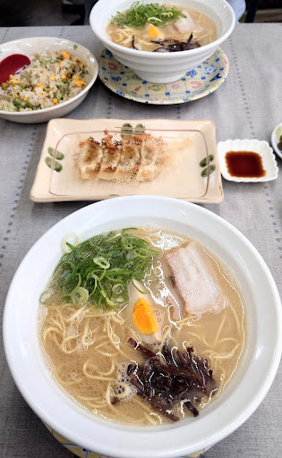 Read moreこちらの黄色みがかった玉子麺が食べたくて訪店しました! いろいろ食べてみたかったので、2人でAセット(ラーメン・半チャーハン・餃子4個)とラーメン単品を注文しました。 スープは見た目あっさりですがしっかりコクがあり雑味なし。どこか懐かしい味で安定の美味しさでした。 麺は細麺と中太の間ぐらいで食べやすく、ラー麦使用の玉子麺で歯ごたえもよくすごく好きな味です。 長さもすすりやすくてちょうど良い! 美味しくて久しぶりに替え玉しました。 お好みでニンニクを入れても美味しくいただけます。 味付け玉子もチャーシューも味わい深く最高でした。 また、辛子高菜が辛すぎず美味しくて、もちろんラーメンに入れても良いし、ご飯にも合うと思います。 炒飯は見た目はシンプルですが、食べる前から美味しいと確信するような良い匂いで、食べると予想以上でした。 餃子はしっかり目の味付け&小ぶりで、これはご飯が進むと思います。 店内は清潔で、お店の方々も愛想良く総合的にみてとても丁寧なお仕事をされていると思います...