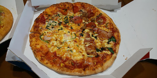 国内デリバリーピザチェーンの中では、売上と店舗数がNo.1という大手チェーン店。 積極的に色んな割引システムを導入している事で 知られています。 ウルトラチーズピザ・ツンデレピザ・台湾混ぜそばピザ・邪道のマヨピザなど、期間限定で個性的過ぎるピザが扱われる事でも有名。 デリバリー系のお店では珍しくオープンキッチンで、調理している風景がそのまま見られ、衛生的に安心できるのがいいです。 店員さんの対応は普通で、可もなく不可もなく。 配達だとかなり割高なので、こちらの支店を含め、どの店舗でもお持ち帰りで購入してます(←2枚目無料はありがたいです)。