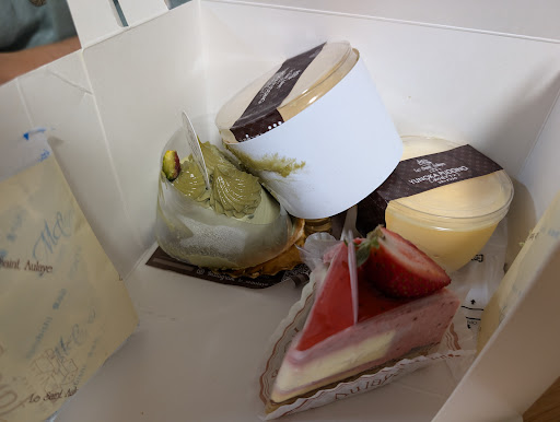 Read more5.6年前生クリームが変わり、サントーレさんから離れていましたが、昨年久しぶりにケーキを購入したらケーキもシュークリームもめちゃくちゃ美味しくてすごく感動したのですが… 1年ぶりに購入したら物価高の影響なのか、また味が変わったような…。苺のケーキは、香料の香りが強く(イチゴ味のお菓子みたいな香り)特にシュークリームは生地も変わってサクサクじゃないし、クリームはバニラビーンズが入ってなくて味こんなだった?って感じました。去年の感動するような美味しさじゃなかったです… 物価高で色々大変だとは思うのですか、値上げしてもいいから味は変えないでほしいです。夏に桃のケーキを購入したくてまた来る予定ですが、シュークリー...