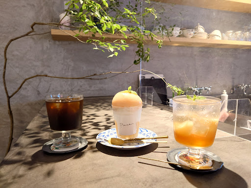桃ソフト、桃ティソーダ、アイスコーヒーをオーダーです。