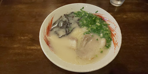 Read more筑紫野インターの近くにあり前を通っていてきになりいってみました。 ラーメン550円替え玉100円 このご時世ラーメン550円はかなり良心的です。替え玉も100円とお安いです。 スープは白濁した久留米よりのスープです。 見た目以上にかなりさっぱりした感じで飲みやすいです。 さっぱりですが旨味もありますが、がっつり、コッテリの方にはオススメではないです。 麺は博多ラーメンオーソドックスではないように個人的にかんじました。ちょっと喉ゴジがツルツルな感じです。 トッピングはチャーシュー2枚にキクラゲにネギです。 チャーシューは食感がぷりぷりして美味しいです。 他にもちゃんぽんやチャーハンもおいしそうでした。 ランチセットで白ごはんの量が3段階選べるのもお得です。 店内はカウンターが5、6席にテーブルが2つ3つあります。 無料の高菜など漬物を入り口右にとりにいけます。高菜は個人的にはちょっと辛味もありご飯に合う感じです。...