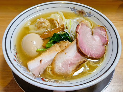 Read more前を通りかかり 何か出来てるなー とUターンして戻る 入店すると元気の良い挨拶と券売機での購入を勧められる 一人大将の店のようで客席数は少ないものの慌ただしく働き忙しそうです 新規開店で居抜きでも無い為新装の綺麗な店内、清潔感良いですね 壁には日本地図に全国のラーメン一覧があり大将のラーメン好きが窺える 注文は塩ラーメン+たまご+わんたん(3個) 待つ間にセルフの水を取り座っていると中華鍋を振る音が… 券売機で見落とし一人大将で油断しました、チャーハン有りでぐぬぬです 暫くしてラーメン着、見た目綺麗な盛り付けはそれだけで食が進みます ちょっとトロッとしたスープは出汁感強くおおっ!となります 麺は小麦のパツパツ、メンマも太目で食感と味付け良し チャーシュー2種はバラ(煮豚)とモモ(焼豚)でしょうか、モモの焼きで余計な水分が抜けて濃くなった味わいが噛めば噛む程で思わずうーんと唸る。 このチャーシューが入ったチャーハンを頼まなかったのが悔やまれる トッピングに たまご と わんたん...