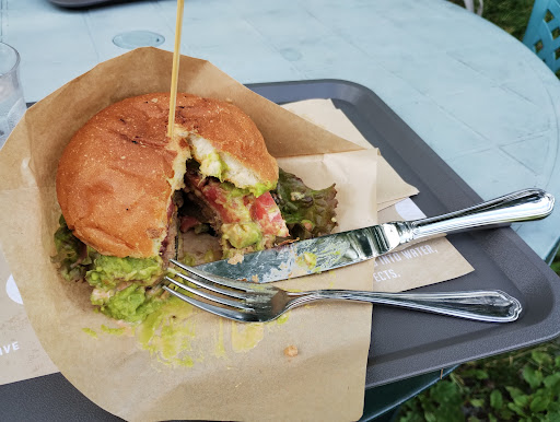 Read moreボリューム満点。こんなに分厚いバーガーを食べたのが初めてだったのでかなり食べにくかったですが、それも醍醐味で楽しかったです!全てヴィーガンメニュー。パティはジューシー感はあまり無く、歯ごたえがしっかりしています。個人的にはプラントミートにわざとらしくジューシー感を足しているのが苦手なので、こちらのパティは食べやすくて良かったです。 店内のテーブルで食べてもいいし、外のテーブルで食べてもOK。ナイフとフォークを貸していただけます。店員さんがとても素敵でした(^^)