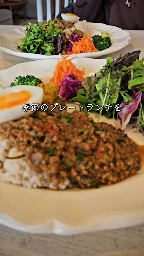 ランチプレートは ナチュラルスパイスのキーマカレーで 旨みだけを残して全く重くない 八ヶ岳産の野菜を使った副菜たちも新鮮だから甘さがある