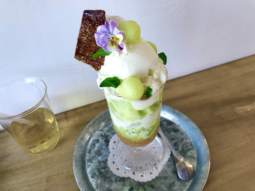 洋梨と葡萄のパフェは さっぱりとした洋梨に甘さと酸味の葡萄に生クリーム さっぱりとした梨と甘酒のジェラート コクのあるバニラヨーグルトアイス 米粉のクランブル チャイ風味が食感のアクセントになりジャスミンブランマンジェが終盤に全体を包み込む 爽やかなのに満足度がすごいパフェでした
