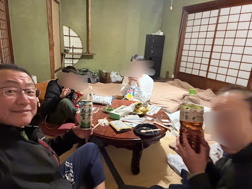 古民家を改造したとのことで、スースーするかと思いましたが、障子を閉めてガスファンヒーターとエアコンつけたらポカポカ。軽く部屋飲みして、温かくして眠れました。