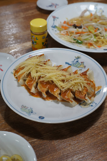 定番餃子はもちろんおいしいけど、新作の生姜がたっぷり乗った味噌ダレぎょうざもおいしかった!オリジナルラーメン七味をかけるのもオススメとのこと。