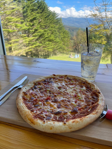 Read moreリフト登った辺りにあるレストランです。奥の谷側に座ると窓からの景色が素敵です。 以前来たときは座る場所の確保すら難しかったのですが、今回は貸しきりでした。 中央の窯で調理をしているようで、注文から提供までの時間が長めなので注意が必要です。ピークタイム、子連れ、腹ペコの時…なんかはビックリしますね。もともと窯焼きが時間かかるのとカウンターといったり来たりと無駄が多い印象。 メニューは高く見えますがドリンクついてますのでそこはアピールした方が良いような。 味は本格的で美味しいです。ありがちなレトルトを盛り直して出した…みたいなものとは比べ物にならず食べごたえあり。 前回は子供と一緒だったのでピザ(30cm)だったのですが、今回はなぜか断られました。いや、そんくらいか食べられますよ!代わりに注文したハニートーストもこれまたボリューミーでした。フルーツも盛りだくさんでこれでドリンクつき1000円はピザの1950円と比べてコスパよすぎです。...