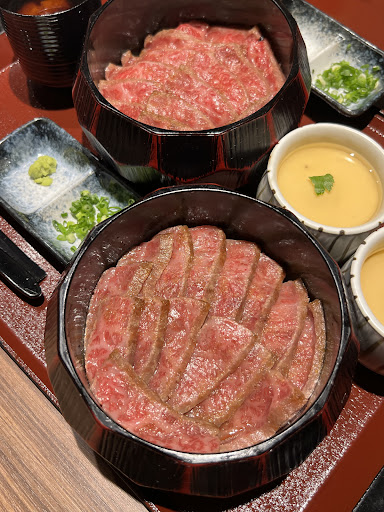 2023年初ランチは、、、⁡ ⁡⁡ ⁡知立市にある⁡ ⁡『和牛焼肉 はな縁』さんへ⁡⁡ ⁡@hanaen_yakiniku ⁡ ⁡⁡11時過ぎに入店。すぐ座れましたがどうやら皆さんご予約されていたよう😮⁡ ⁡思いつきで行ったの自分くらいかも🥹 ⁡ ⁡初ランチだからとつい奮発- ̗̀ 🍽𓈒𓂂𓏸⁡ ⁡⁡ ⁡正月限定メニュー⁡ ⁡『A5松坂牛+A5飛騨牛食べ比べ丼セット』⁡ ⁡【3,650円】なり🫣⁡ ⁡⁡ ⁡ああ、、、、もう見た目がやばい。綺麗😍⁡ ⁡綺麗なサシが入っていて、、、美しい✨⁡ ⁡⁡ レアなロースがたっぷり🤤⁡ ⁡これに茶碗蒸し、サラダ、味噌汁、お新香、お出汁、デザートにわらび餅がついてました💪⁡ ⁡⁡ ⁡肉YA☆WA☆RA☆KA☆(表現がおっさん)⁡ ⁡やば!ウマ!いやウシか!(知ってる)⁡ ⁡脂が甘い!!!⁡ ⁡飛騨牛の方が脂濃くて甘味強い気がする😳⁡ ⁡でもどっちも美味すぎる😋⁡ ⁡⁡ ⁡出汁との相性も抜群🥹🥹🥹⁡ ⁡デザートのわらび餅もぷるんぷるん✨⁡ ⁡⁡ ⁡接客も雰囲気も言うことなし😊大満足✨⁡ ⁡⁡ ⁡次は贅沢ローストビーフ丼食べたい!!!⁡ ⁡また来ます✋⁡