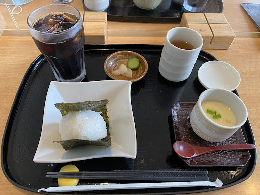 興奮するレベルのエアリーかつツヤピカおにぎり。ごはんの塩味は控えめで具の鮭の塩気が引き立って美味しい。ピンと立った海苔。漬物も美味。茶碗蒸しはとろぷる。銀杏もあり、小ぶりでも海老入り。珈琲も深煎りでキリッとよく冷えていてとっても美味しかった。