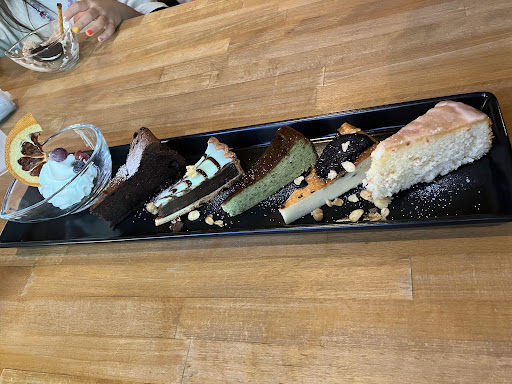 ケーキ5種類はショーケースから選ぶことができどのケーキもおしゃれで美味しそうで迷いました☺️ ガトーショコラ、バスクチーズケーキ、抹茶のケーキ、グレープフルーツのケーキ、チョコミントのケーキ🍰とどれもと...