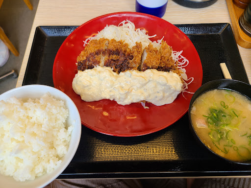 2024/8追記 かつや感謝祭にひかれて平日の16時頃に伺いました。 お客さんは感謝祭の為かこの時間でも席が6割ほど埋まっており、にぎわっていました。 3つの商品が割引きになっていてその中でロースかつ定食を注文しました。 通常の割引券は感謝祭の商品には使えないが他の商品は使えると店員さんがお客さんに伝えていました。 割引きになっている商品にさらに使おうとするとは。。。強者がいると感じました。 定食の汁物は豚汁になっていて、味も濃い目で好きな味付けです。とんかつはサクサクでキャベツとテーブルに置いてある割干し大根漬けでご飯が進み茶碗一杯では良い意味で足りません。 店員さんも活気があってキビキビシしていて良い感じです。 会計後に次回使える100円割引き券をくれます。この券が無限ループの始まりになります。