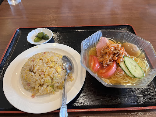 大盛りにしてはいませんが量はどちらもしっかりあってとても満足できる量です。 韓国冷麺はさっぱり甘酢系の食べやすい味で、麺もしっかり冷麺で食べ応えのある麺でした。鴨肉が載っていたのが地味に嬉しい。 炒飯も具沢山で食べやすい味でとてもおいしかったです。