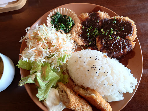 Read moreつつじが丘グランドを曲がりその先にあるモダンカフェ?モーニングやランチをやってる老舗の喫茶店です。もう20回は行ったと思う!お昼時に伺うこと多いのですが…大体プーレートランチか、パスタランチを頂くこと多いかなぁ~!プレートランチはお値段以上に量も多く、美味しいので大人気。ご近所のマダム達はランチ弁当が人気みたいです。今回もプレートランチを注文。味噌カツと白身フライにしました。(もう一つはトンテキと白身フライだった)ご飯大盛りにしたので…お腹いっぱいで大満足。嫁さんはお弁当のクリームコロッケを注文しましたが、美味しそうでした。ここのお店全体的に量多めで味も美味しい!パスタも量を選べるので…腹ペコ時は満足高いですね。駐車場もオモテとウラにあり10台は停めれると思います。今度はモーニング行こうかなぁ(笑)オススメし...