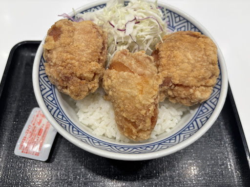 平日の17時頃に伺いました。 駐車場は広くて入口も二ヶ所ありドライブスルーもあります。 今回は割引きクーポンがあったので初めて唐揚げ丼(並)を注文しました。 メニューと違って盛り付けかたのせいなのか、ご飯が見えています。それでも綺麗に盛り付けられており食欲をそそります。唐揚げはメニューでみるより大きく食べてみるとアツアツでとてもジューシーでとても美味しいです。 横に置いているのはドレッシングになります。 食べた後の満足感は高く、...