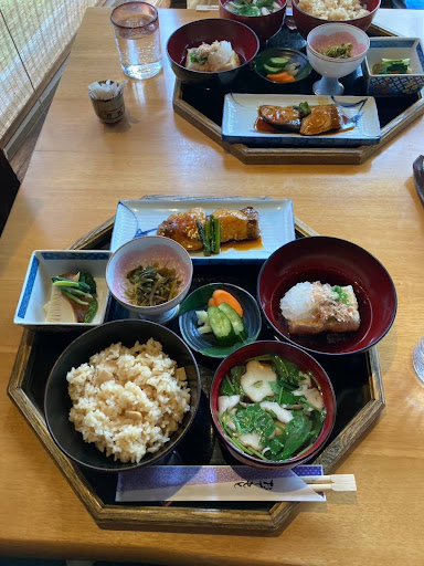 たまたま近くで用事があったため、Googleマップで調べて近くであったので訪問しました。お店は住宅街の中に森に面した立地にあり、店内から景色も良く、また、木の香りが感じられるぬくもりがあるお店です。 メニュー数が多くなく、蕎麦が食べたいので蕎麦御膳を注文。 蕎麦は稲庭そばの表現どおり、ツルツルなお蕎麦で、薬味に山ワサビが付いているのも個人的には良かったです。 揚げたての天ぷらもちょうど良い揚げ具合でボリュームもちょうど良いです。 野菜の煮物も野菜の美味しさが感じられる一品でした。 概ね満足いく味でした。 ただ、お値段に対してで言うとちょっとお高めな印象です。 雰囲気...