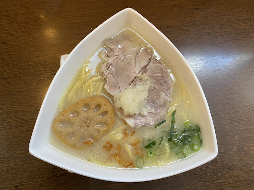 Read more夜6時くらいに訪問。店の前駐車場にすんなりin! 店内は4名ほどのお客さん。 大勢のみなさんのクチコミにあり、メニュー1番上のベジポタ塩とリゾットご飯を注文。 提供までの時間は早かったです。まずはスープを一口、ちょっととろみがあり、ポタージュとラーメンスープの中間みたいなトロミと味です。個人的にはもう少し塩味があった方が好みでした。テーブルにあるガーリックパウダーとブラックペッパーで少し調整して頂きました。 麺は太麺と中細麺を選べますが、定員さんに伺ってお勧めしてもらった中細麺にしました。この塩味には確かにこの方が会う気がしました。 もう少し硬めの方がベストマッチな気がします。 具材はレンコン、チャーシュー、フライドオニオン?、大根おろし少々。な感じです。ちょっと具材が寂しい感じでしたね。珍しい具材のレンコンはしっかり味が染みて柔らかくなってました。 麺を食べ終わる頃にオーダーしていたリゾットご飯をもらってスープにin。チーズが溶けてリゾット風ですが、これもちょっとパンチが足りない感じでした。これにも、卓上のガーリックパウダー、黒コショウ、バジルパウダーで調整して最後の一滴まで完食しました。 全体的にまとまってはいるけど、自分にはもう少し塩味やスープの強さが足りませんでしたね。気になったのは、調整用の各種薬味も容器にちょっとしか入って無くてたまたまなのか?それとも大量に入れる人の防止のためなのか?わかりませんが気になりました。 店員さんの対応もよく気持ち良く食事出来ました。 値段も1000円以下でラーメンとご飯が食べれて、お腹いっぱいにな...