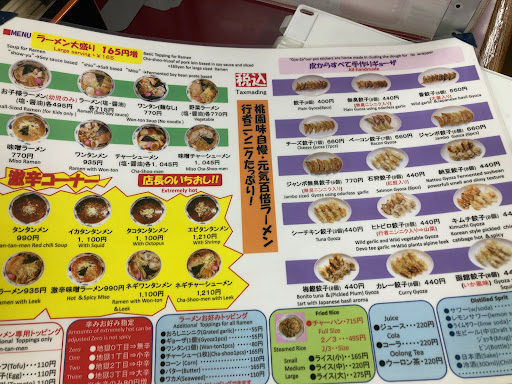 食事★★ 質、量に比べて値段が高いと思う、メニューも英語併記で完全にインバウンド対応の強気の価格設定、餃子は8個で500円、期待した方が悪かったです、小さい!一口サイズの餃子で冷凍をそのまま焼いただけの乾燥気味の味がしました。 メインのラーメンはネギ味噌チャーシューを注文、全体的に化学調味料でぼやかした味でした、チャーシューは味がよく染み込んでいて、かなりの逸品でした。