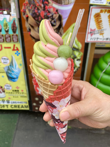☑️ 和ミックスソフト【500円】 抹茶とイチゴが織りなす絶妙なハーモニーに、思わず「うっとり…」。可愛らしい3色団子がちょこんと乗った姿は、目にも楽しい一品。 一口頬張れば、ふわっと広がる抹茶の香りと、ジューシーなイチゴの甘酸っぱさが絶妙に絡み合い、優しい甘さが体中を包み込みます。お団子の食感も嬉しいアクセント!