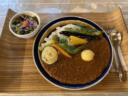 5年振りの帰省で、友人とこちらで合流。 以前は土日祝限定のアップルパイ目的で伺っていましたが、今回はランチを。 インスタで気になっていたパエリアを注文しました。 魚介の出汁が利いていて、彩りもきれいでとても美味しかったです。 この他に自家製ケーキセットを注文し、セットの飲み物は有機栽培アイスコーヒーを。 天気が良かったのでテラス席で頂きました。 柱に絡んだグリーン🌿がとても爽やかで、ソレがフレームになると言う事でスタッフの方に写真を撮って頂きました✨