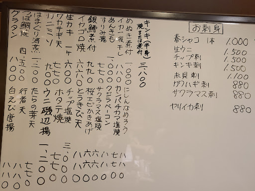 2023.5.2 家族では初訪問です。 職場の飲み会では利用したことがあったり、 年末のお寿司、お刺身を頼んだことがありました。 行きつけの居酒屋がコロナの影響で閉店になったことで おいしいお店を探していました。 駐車場はニューサンロード内にありますが100mくらい離れている上に、台数も少ないです。 私は近隣の有料駐車場に駐めました。 GW中の平日19時で予約していきましたが、ほぼ満席。 子供たちはまず、金太郎寿司(10食限定)と並。 私はカニミソ、お任せ盛りから始まり〆は寿司特上。 特においしかったのは、おすすめメニューの桜エビかきあげ、 銀鱈煮付け、カニミソ、グラタン、とうきび天。 カニミソは、私はお代わり。とうきび天は子供たちがお代わり。 おすすめメニューは何を頼んでもおいしいと思います。 家族4人で食べ過ぎました。2万超えでしたが品数、お酒を 味、お寿司屋さんと考えると妥当だと思います。 今後は...