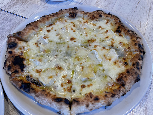 This restaurant was the sole positive part in my last four days in the city. After having my flight canceled four times and almost all other restaurants closed due to a holiday, this shining light of a brick oven made me smile. I’m not sure what was better, the personality of the two owners, their friendliness and willingness to let me try a couple of things that weren’t listed on the menu, or the absolutely incredible food. The pizza could have maybe used a sprinkle of salt, but otherwise had an excellent, crispy crust. The dessert was unique and the perfect amount of sweetness, and the environment was warm and inviting. It’s a bit of a walk from the center part of the city, but the street is pretty well lit so I never felt unsafe on the trip. Cash only. Two outdoor tables and about seating...