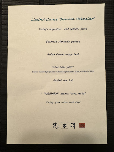 I had the opportunity to enjoy a complimentary hotel anniversary dinner at ROBATA Grill Restaurant SHIKOTSU, included in my room rate at ANA Crowne Plaza Chitose. The dinner was a limited-course menu called “Namara Hokkaido,” showcasing fresh, flavorful, and beautifully presented dishes.