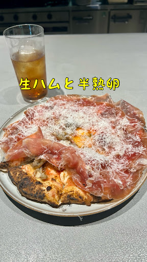 生ハムがおいしいらしいので、 生ハムと半熟卵とマルゲリータを注文。