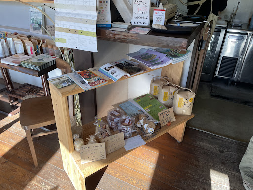 店内に使われている調味料やお茶、麻製品の小物や、本なども売られています。 ここに伺う前に立ち寄った「お母さんのシフォンケーキ」のサーターアンダギーもあったりと偶然にも地域繋がりのあるお散歩になりました。