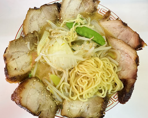提供されたのを見るとこれでもかと乗ったチャーシューがいい感じです。 ゆで卵が1個と真ん中にどーんと炒められた野菜がのっています。 この野菜は玉ねぎやニラ、もやしでがっつりとニンニクの効いた味付けです。 これで飯が食べられますな―。 スープは味噌ベースの味わいかと思うんだけど ニンニクがたっぷりで癖になる味わいです。 チャーシューは赤身で私の好きなタイプ。 スープにたっぷりと浸していただきました。 ボリュームも本当に多くて腹いっぱいになる一品でした。