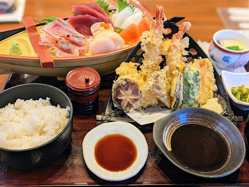 舟盛りの刺身が来たどーー🛥 マグロにエビにイカなどなど🐟🦐🦑 フレッシュ海鮮で私はリフレッシュ(*´🐽`) サックサクのプッリプリのえび天🍤 野菜の天ぷらもお上品なテイスト😋 お米もふっくら炊きあがりの旨米🍚 食べ終わって一息ついているとお水をどうぞと🚰 和ごころの意味が分かった気がします☺️ 美味しかったです、...