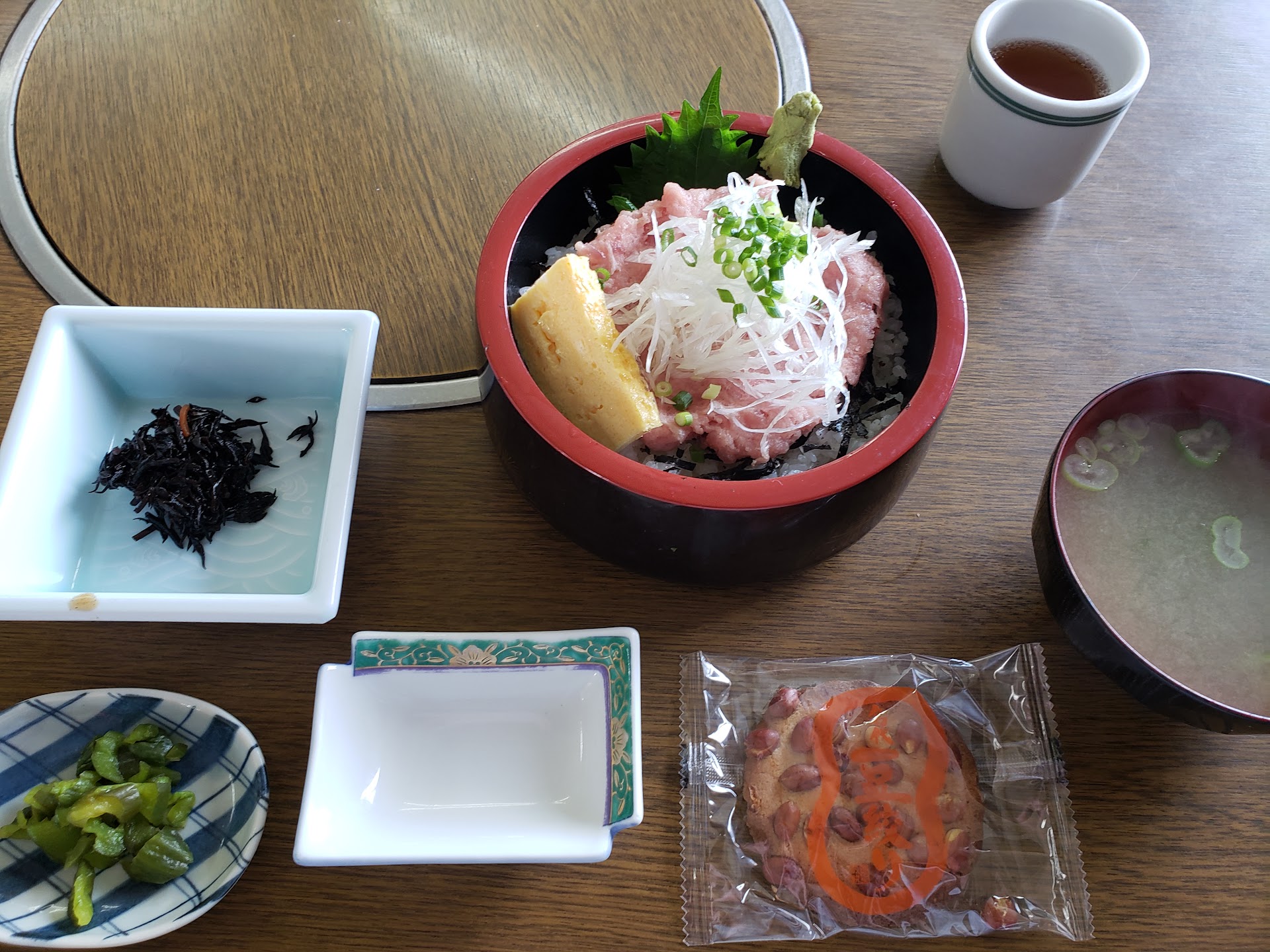 Next to the lighthouse - we went because you can take a dog (a separate room with two tables - so two groups of people/dogs possible). Menu is mostly raw fish - I had まぐろねぎとろ丼 sliced tuna and mashed tuna with onion, over rice. The sliced tuna was nice and soft. They have a kids lunch of mini Japanese style burger, rice, sausage which my daughter liked. If you don't like fish they have curry rice and some ramen. They have bottles of ji-biru craft beer. Atmosphere is a like an old canteen / restaurant so nothing special - but there are few places you can take a dog inside and the food is decent and they have craft beer, hence 5 stars. Also has...