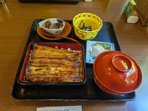 神栖のお店に行ったら今日は予約のお客様だけなんです、ごめんなさいと言われてしまい、仕方なくそこから40分クルマを走らせてこちらまで来ました。12時半頃だったので駐車場はほとんど埋まっていましたが何とか停められました。神栖のお店は駐車場も店舗も小さいですがこちらが本店なのかお店も駐車場も大きいです。 店内に入ると店員さんは誰もいなかったのでイスに座って待っていました。なかなか誰も現れないので不安になり始めた時に店員がようやく来ましたがその時に丁度入店した常連さんの方を先に案内し始めました。あれ?と思いながら待っていたらなんにも言ってこないので友人が声をかけたら、空いてる席に座って下さい、と言われました。こちらは初見で店のルールとか全然分からないのにそれぐらい分かるでしょ的な態度をとられてかなり不愉快でした。 気を取り直してメニューを見ました。お金があまり無かったので上鰻重は泣く泣く諦めて普通の鰻重4180円を注文、友人はそれプラス肝焼き1本880円を注文しました。ご飯の大盛がたった50円プラスだったので私だけ大盛にしました。 鰻屋さんの割には結構出来上がりは早かったような気がします。メインの鰻重の他に肝吸い、お新香、ワカメの和え物、コーヒーゼリー?がついてきます。 鰻重は焼き加減が絶妙でとても美味しかったです。身の周りはカリッと、中はフワッとしていて口の中でホロホロに溶けて無くなってしまいました。高い金を払っただけあって理想の鰻重に出会えて良かったと思いました。ご飯の炊き加減も丁度いいし、50円プラスしただけで量も多くて満足しました。その他の料理も普通に美味しかったです。 だがしかし、料理のクオリティは高いのに、店員の接客態度が酷かったため、お腹いっぱいにはなりましたが何となく気持ちがモヤモヤしてしまいました。今後は新規の客にも親切丁寧に接客するよう改めて欲しいです。