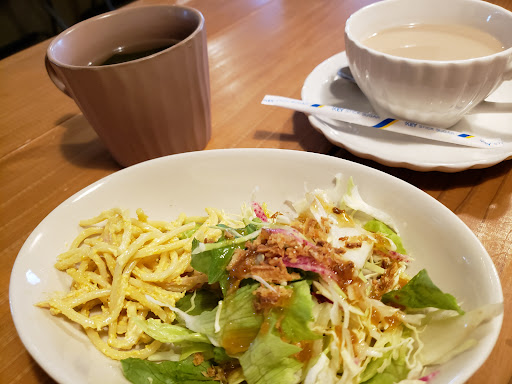 ランチに行きました。店内はこじんまりしていて広くはありませんが、手作り感とセンスの良さを感じました。 奥にテーブル席2席、手前にコの字形のテーブル(しきりあり)、カウンター席2ヶ所。 ランチ(4種ほどありました)にはサラダ、スープ、ドリンク、デザートがついて1000円前後なので手頃だと思います。人気のナポリタンとヘルシーランチを注文。ヘルシーランチのライスは2種類から選択(私は白米にしました)。 量が少なめかと思いましたが、デザートまで食べるとちょうど良い感じ。ヘルシーランチのデザートは寒天➕あんこ➕クリームで量も適量、良く考えられたデザートだと思いました。頼んだ料理はどれも美味しかったです。 トイレもシンプルな造りですが、お洒落でした。女性に人気があるのが分かる気がします。でも、男性の方もふらりと1人でこられていて常連さんが多いお店のようでした。 場所が分かりにくいのと駐車スペースが少...