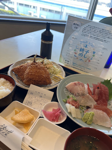 今回は6月末の土曜日に、「銚子めし」の入梅いわしを味わおうと訪問しました。(地元では“にゅうばい”ではなく、“いりうめいわし”と呼ぶらしい) 朝日新聞で「今年はいわしが数年ぶりに多く水揚げされたので、是非銚子に食べに来てください」と漁業関係者のコメントが報道されたばかりでした。ところが、なんと12時前にいわしメニューは売切れ、とのこと。それも「せっかく楽しみにして来てくださったのに、ごめんなさいね〜」とでも一言あれば印象も違ったのですが、「おわりです」と素っ気ないったらありゃしない(苦笑) わざわざ店頭にポスターや手書きのオススメとして書いておきながら、なんということか… このホスピタリティの無さは、斜陽都市の象徴かと感じてしまいました。 代わりに一同が頼んだメニューも今ひとつ。 ジャンポ海老フライは、身を引き伸ばして衣たっぷり。 メヒカリの唐揚げはたった3本で800円超え。シナシナで、色もまるで竜田揚げ。揚げ置き? 鯵のなめろうフライだけは、物珍しさもありそこそこの旨さでした。 海鮮丼の刺身はやや生臭く、定食のごはんもこわくてパサツキ気味の部分がありました。味噌汁はあさりの風味はあるも、ほぼ具無し(以前の松◯の無料でつく味噌汁のよう)同行者は海老フライを残し、ごはんを味噌汁にinして、ネコマンマにして流し込んでいました。 決済方法は現金及びPayPay。