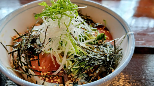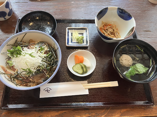 Read more旅先から帰宅当日の昼時に初訪問。 地元民のみならず、観光客の来訪も多いらしく、ホスピタリティに溢れたスタッフの対応といい、お店の雰囲気といい、一見の我々でも繁盛している理由が瞬時に感じ取れる居心地の良いお店でした! そんなお店のランチの漬け丼は、言うまでもなく美味! お店の雰囲気も手伝って胃も心も大満足でした! 私と連れは鯖漬け丼とマグロ漬け丼の定食と、名物の鯖寿司を注文。 鯖丼は、漬け汁が良い塩梅で絡み、上にのった白髪ネギと胡麻に付け合わせの細切り生姜をかけて食べると魚の甘みがより引き立って、おかわりしたくなるほど!お米も甘くて美味しいです! 一般的に想像する丼より小ぶりなので、女性でもペロッといけちゃいます! そして、是非食べてもらいたいのが、鰯のつみれ汁! 丼は単品もありますが、鰯のつみれ汁が付いている定食がマスト! 主役のつみれの味の濃さに感動しました! 白だしが程よく効いた優しい味のお汁が引き立て役になって、めーーっちゃ旨い!! つみれ汁は単品もあったので、追加で汁の大をチャッカリ発注! 大にはつみれが3個も入っていて、胃も目も幸せすぎた〜 その人気ぶりに食べて納得! こんなコメント読んでる時間があるなら、現場にゴーして胃袋にインしてみて! 飛ぶぞ!笑