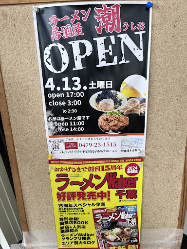 『銚子麺屋 潮』は今年オープン10年目を迎えます。そんな『潮』の新たなるチャレンジ『朝ラー』が本日からスタートしました🎵 朝ラーの時間帯は日・月・火・水の7時半から11時までで、3種類のラーメンがそれぞれ700円で食べられます🎵