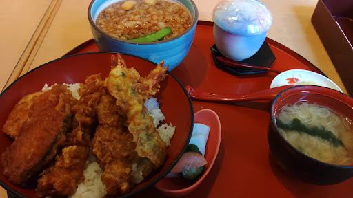 Read more家族でランチで利用。 開店直後11:00ちょっと回ったところだったのですいてた(当然か)。 でも帰るころ12:00頃には、並んで入店待ちになっていたので人気のお店みたい。 食事は、当日おすすめの、金目鯛の天丼セット。 金目鯛の半身を半分にした天ぷらが2枚と野菜の天ぷらがどんぶりに盛られた天丼と、小そば(冷たいのと温かいのを選べる)、茶碗蒸し、味噌汁、漬物。 1480円だったかな?を食べました。 金目鯛の天ぷらがホックりしていて大変おいしい。金目鯛をさしみや煮付けではなく、天ぷらにしてしまうのが、良い意味で銚子らしい大胆さ。そばも銚子らしい醤油の効いた味。少々しょっぱいかな。 その他のメニューも、ボリュームがあって、お得感のある料金だった。 ...