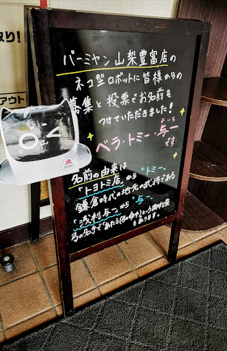 ただでさえ神社でいう合祀スタイルにも馴染めない。おなじ山梨の他店舗、こちらでは「モモちゃん」が配膳。こちらは桃産地でもある事もあり納得。トミーは地名、与一は地元の著名人。ベラってなに?外国人? あーもうスッキリしたい😻