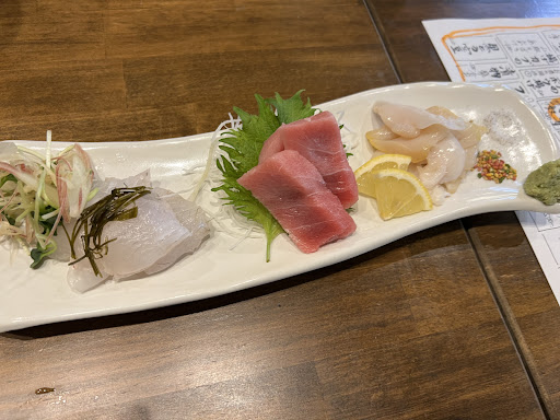 Read more徒歩圏内に出来たずーっと気になっていた居酒屋サン‼️やっと伺う事が出来ました🤗 期待を全く裏切らない、スタッフの対応の良さ、清潔感、メニュー、味、提供時間。どれも文句なしでした。店内は、カウンター席8?席程と、テーブル席2つ、お座敷席2つ、店外にもテーブル席1つ。メニューは変わったりするそうなので、少ししたらまた行ってみようと思います😊自家製ドレッシングを使ったお通しのサラダ🥗も美味しかった‼️お刺身は、産直届きたての新鮮な魚だったそうで、これまた本当に美味しかった♡スタッフサンは皆とてもお若くて…キラキラしていました。それに惹かれるように、若い女の子のお客様がとても多かったです笑笑。私達おばちゃんは、場違いかしら…と思いつつも、お酒と美味しいつまみを満喫してきました☺️✨ 少し前に地元のテレビでも取り上げられたこともあり、予約してから...