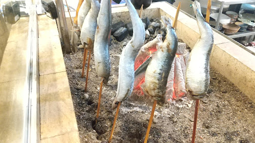 お食事ですが…鰯の原始焼き、これは本当に美味しかった! 身がふわふわで油乗りもよく、これだけあれば問題ないってくらいです。 ただ、じっくりと炭火で焼き上げるので時間がかかります。 なので、来店時に最初に注文するのがいいと思います。 鰯の他にもサンマやニジマス等もありました。