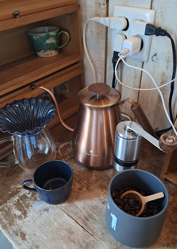 チェックインした昼下がり。夕暮れ時。そして翌朝。窓から入ってくる日差しの色やそれぞれ時間帯の空気感でまたガラリと雰囲気を変えて異なる魅力をまとうこの空間。 散歩から帰った夕暮れ時には、部屋に備え付けのスピーカーに携帯をBluetooth接続して、カフェっぽくボサノバなんかをBGMに流しながら、ミルで豆からひいたコーヒー飲んで、オレンジの光がだんだん薄れ暗くなっていくグラデーションアワーをゆっくり楽しむご機嫌なひととき。朝は朝で、陽だまりのなかぬくぬくとくつろいで。もう、部屋で過ごす時間こそが素晴らしかった‼️