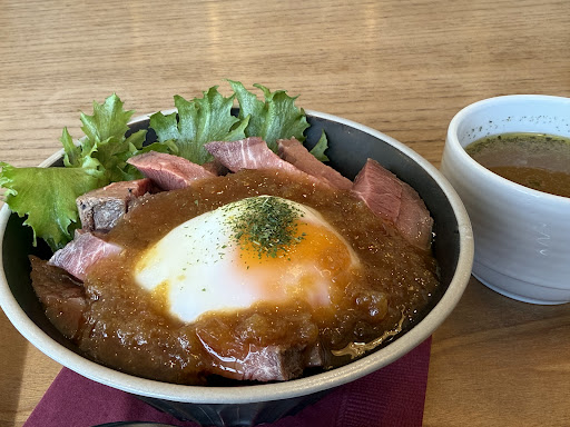 Read more娘とランチしました。先にレジ脇でオーダーし、会計は後払いというシステムです。ランチは3品選べるAプレートか、2品選べるBプレート。どちらもライス・スープ・ドリンクが付きます。今は期間限定でクリスマスプレートも。 ホールには、2人席・4人席と、道路に面したカウンター席。キッズスペースが有って、若いお母さんが手洗いに行く間、子供らが遊んで待っていました。 さて、Aプレート来ました。メインに選んだローストビーフ、旨さは言わずもがな、想像以上に厚い!量もたっぷり。サイドのチリコンカン、スパイスが絶妙。鶏ハムサラダはタマネギのドレッシングとの相性がまた何とも。セットスープも手を抜かず、とろとろの小タマネギがたっぷり。最後に供されたコーヒーもすっきりと美味でした。 自家製ケーキはイートインもテイクアウトもできます。今日はバスク風チーズケ...