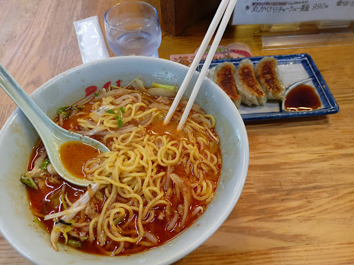 牛骨ベースかな? ネギも野菜もたっぷり!嬉しい😊 スープ飲みながら、ひき肉も入ってる?! チャーシューは、しっかり肉感があって食べ応えバッチリ!! 餃子は、皮薄めにしっかり餡が入ってるのに ペロッと食べちゃう感じで重たさを感じない🤩 もうひと皿頼んでも良かったかも😭ってくらい美味しかったです😋